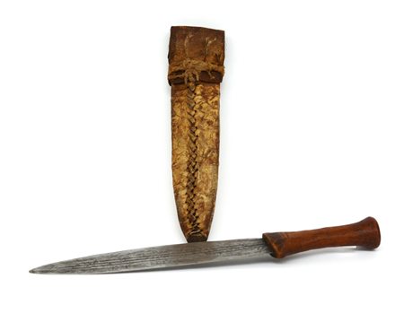 Pugnale con impugnatura in corno di rinoceronte e fodero in coccodrillo. Lama a