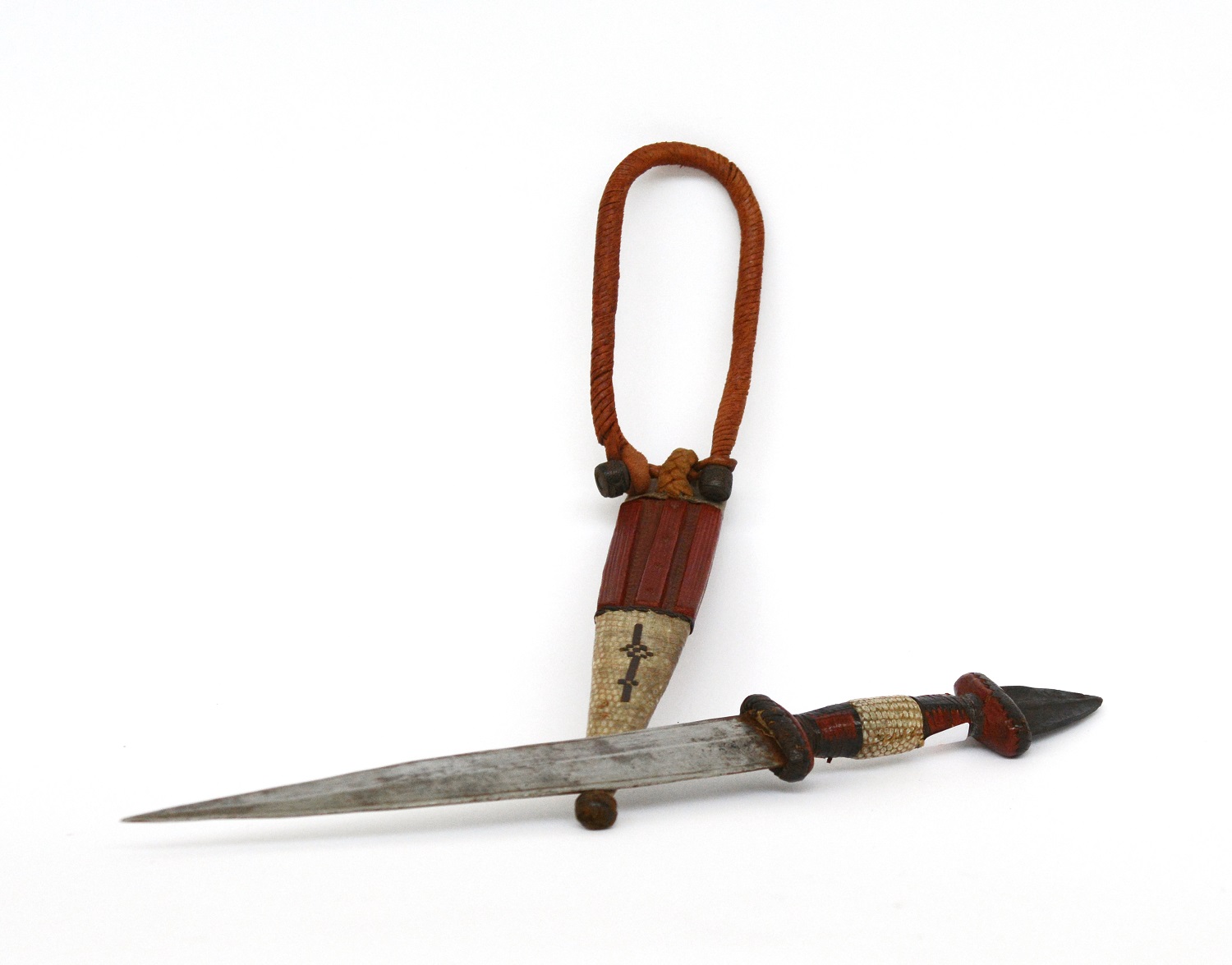 Pugnale da braccio con impugnatura ricoperta da inserti di pelle di serpente te