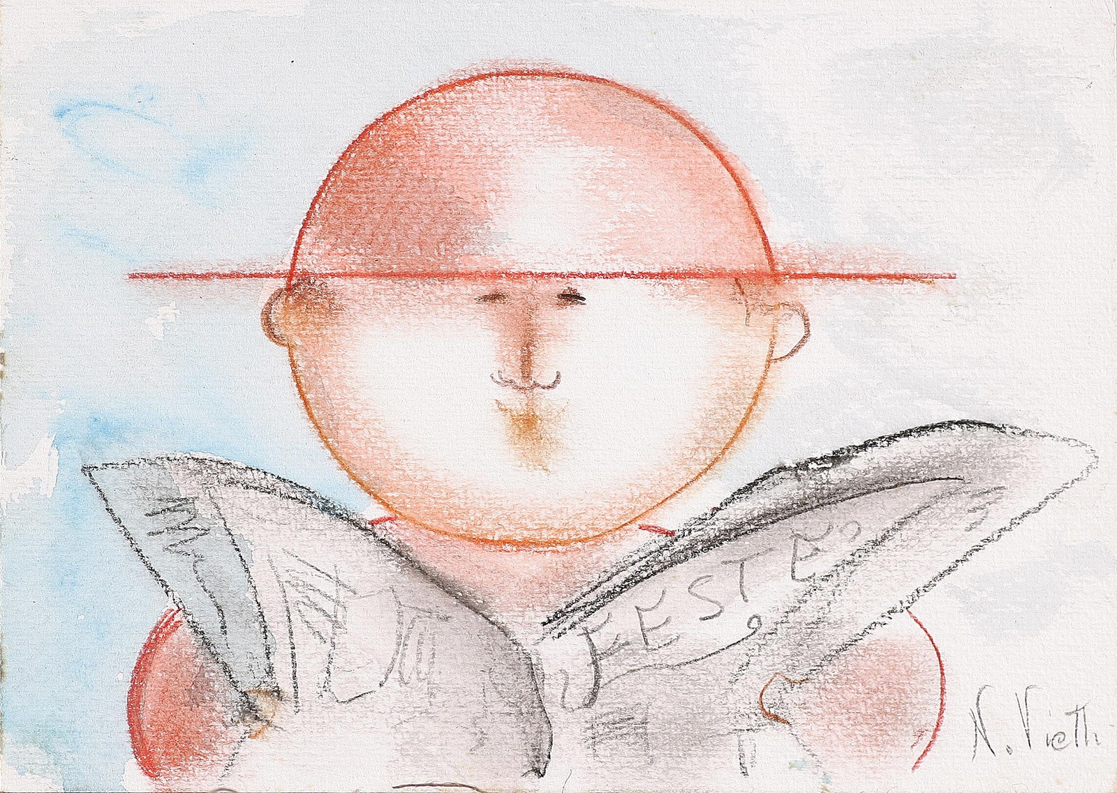 VIETTI NICOLA (n. 1945) Senza titolo. Tecnica mista su cartoncino. Cm 13x18. Firma in basso a destra.