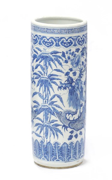 Portaombrelli in porcellana bianca e blu decorato a draghi in vegetazione Cina,