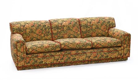 Divano imbotito a tre posti rivestito in tessuto a fiori (difetti)