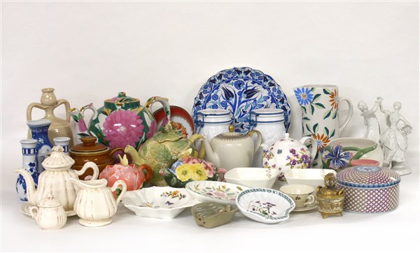 Lotto composto da tre cartoni contenenti numerosi oggetti in ceramica e porcellana di diversa manifattura e decoro (difetti)