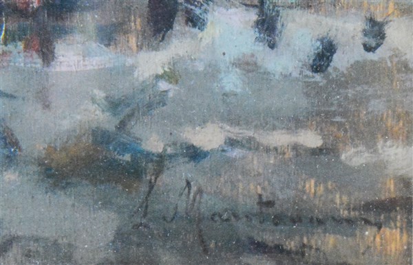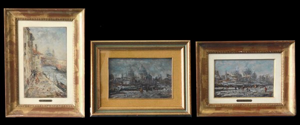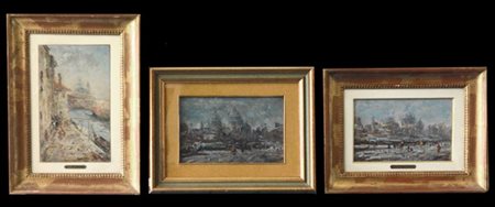 Lotto composto da tre dipinti ad olio su compensato raffiguranti "Scorci di Venezia" (misure diverse) Firmati in basso a destra e sinistra