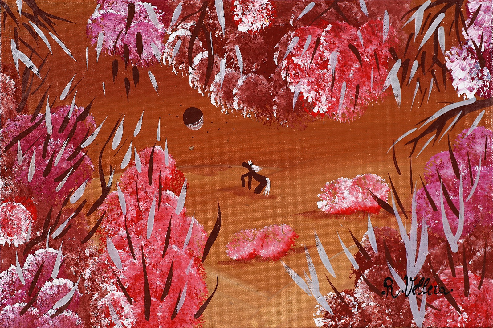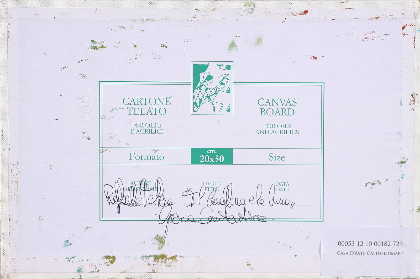 VELLERA RAFFAELLA (n. 1975) Il cavallino e la luna. Olio su cartone telato. Cm 20x30. Autentica dell'artista su fotografia. Firma in basso a destra. Al retro titolo, tecnica e firma per autentica.