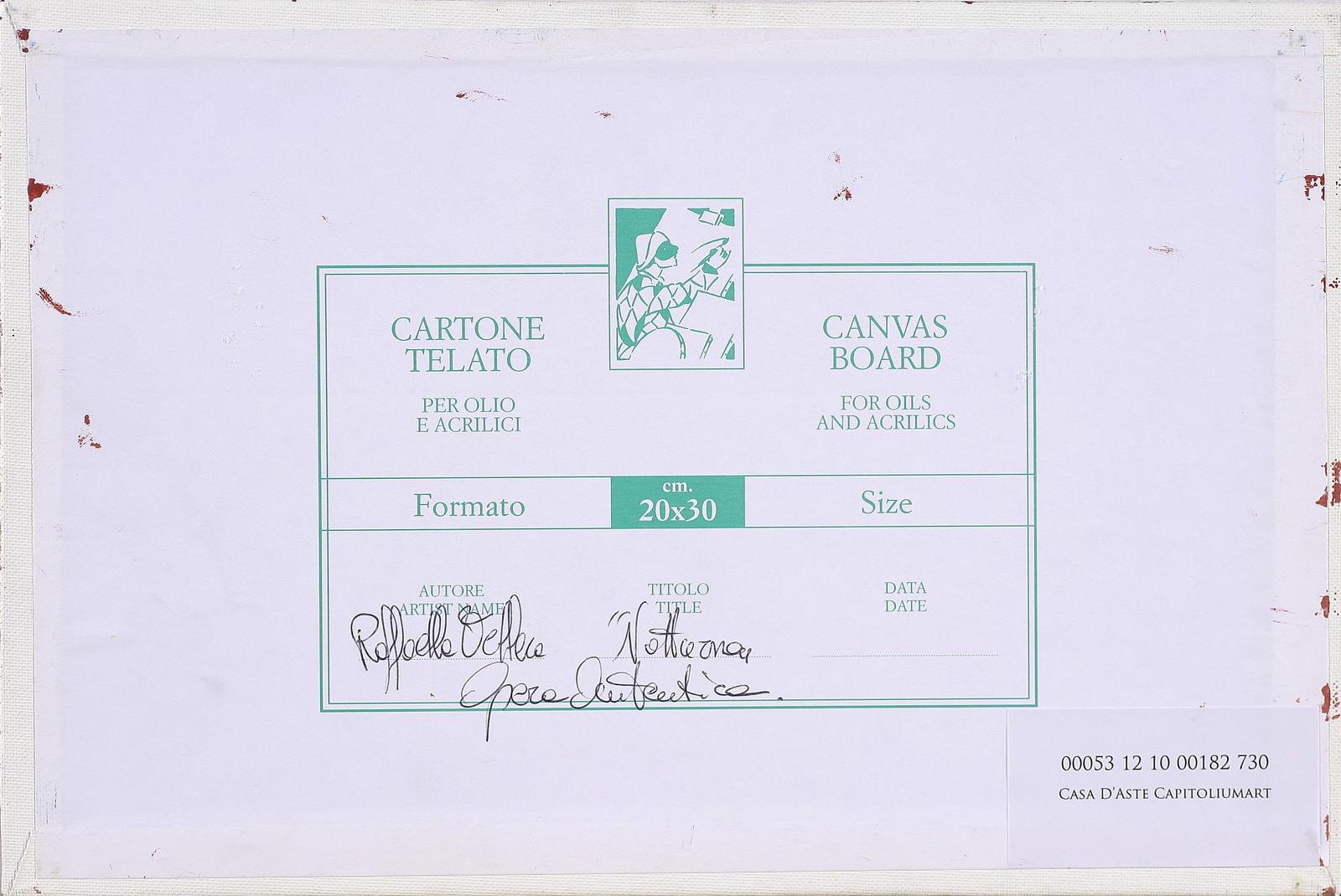 VELLERA RAFFAELLA (n. 1975) Notturno. Olio su cartone telato. Cm 20x30. Autentica dell'artista su fotografia. Firma in basso a destra. Al retro titolo, tecnica e firma per autentica.