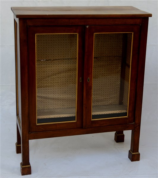Vetrinetta a due ante a vetri con montanti squadrati e fasce profilate in otton