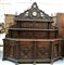 Credenza neogotica lastronata in noce con parte superiore a due ripiani e cimas