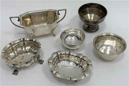 Lotto composto da sei alzate di diversa fattura in argento (g 600 ca.)