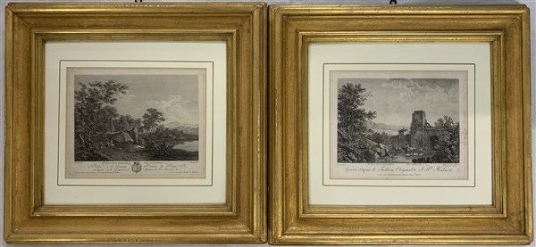 Lotto composto da due acqueforti francesi del secolo XVIII raffiguranti paesagg