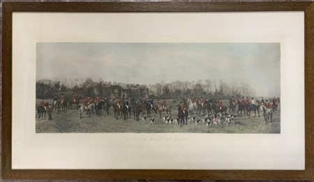Acquaforte inglese a colori intitolata "A Lawn Meet at Aske" (cm 63x116) In cornice