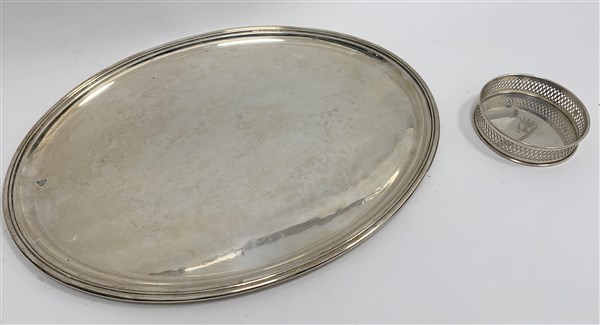 Lotto composto da un vassoio ovale ed un piattino cifrato in argento (g 940)