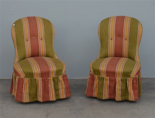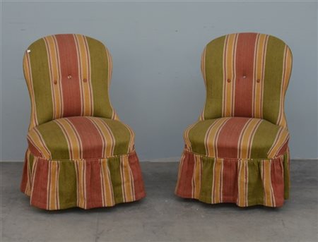 Coppia di poltrone da camera rivestite in tessuto a righe. Secolo XIX (difetti)