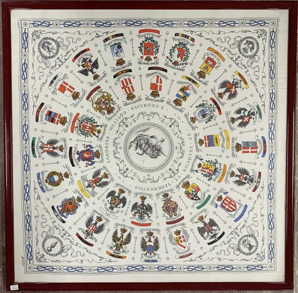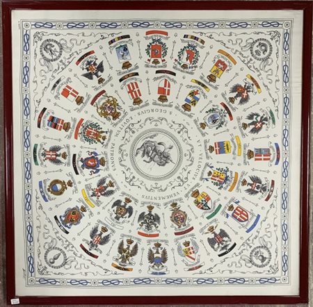 Lotto composto da un foulard in seta con stemmi nobiliari ed una specchiera in
