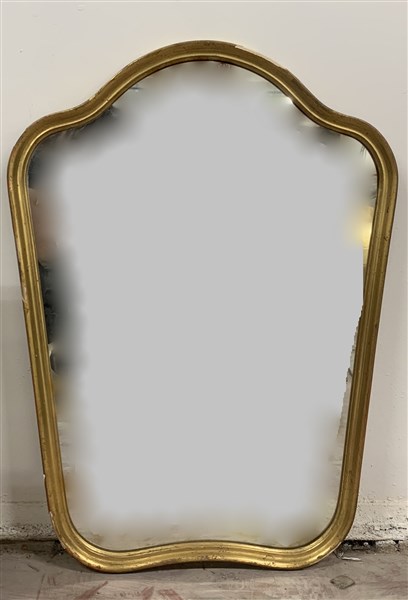 Lotto composto da un foulard in seta con stemmi nobiliari ed una specchiera in legno dorato di forma mossa (difetti)