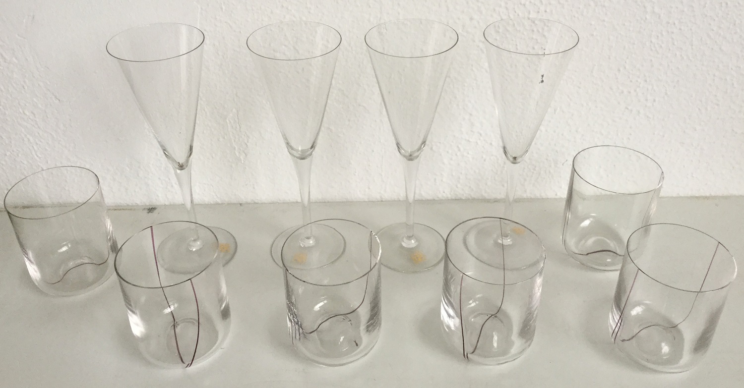 Lotto composto da numerosi bicchieri in cristallo diversi, in confezione originale(difetti)