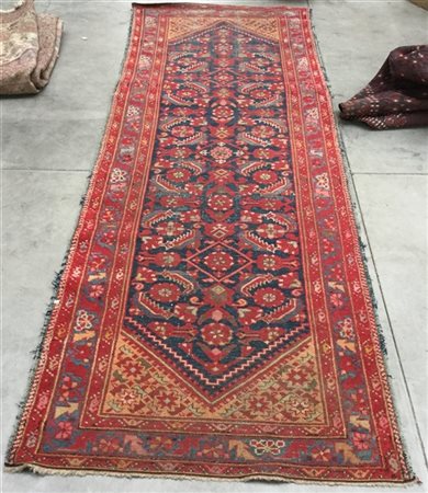 Decoro Herati rosso su campo blu. (cm 293x105) (difetti)