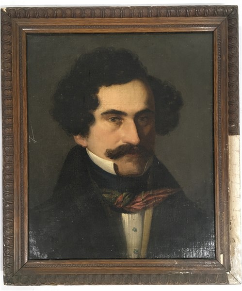 Scuola del secolo XIX "Ritratto di uomo con baffi" olio su tela (cm 45x37) In cornice (difetti)