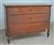 Comò lastronato in noce a due cassetti e mezzo, piedi anteriori torniti. Secolo