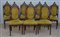 Gruppo di sette sedie neogotiche in noce con cimase intagliate e traforate a mo