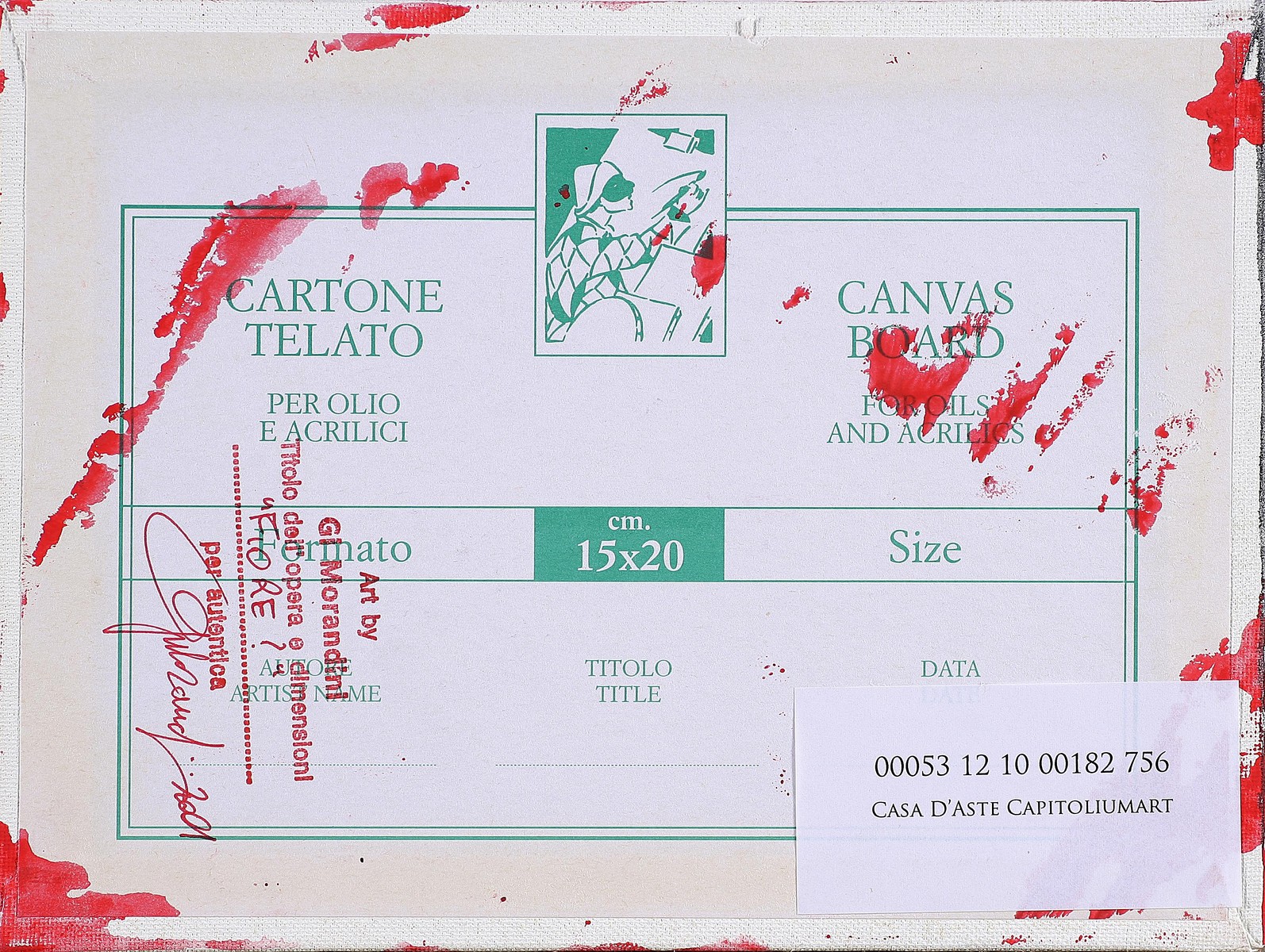 MORANDINI GI (n. 1951) Fiore?, 2001. Olio su cartone telato. Cm 20x15. Autentica dell'artista su fotografia. Firma e data in alto. Al retro titolo, tecnica, firma per autentica e data.