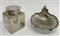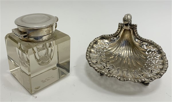Lotto composto da un'alzatina in argento con punzoni di Londra 1906 ed un calamaio con orologio nella ghiera, Birmingham 1927