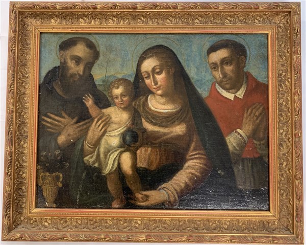 Ignoto "Madonna con Bambino e Santi Francesco e Carlo Borromeo" olio su tela (c