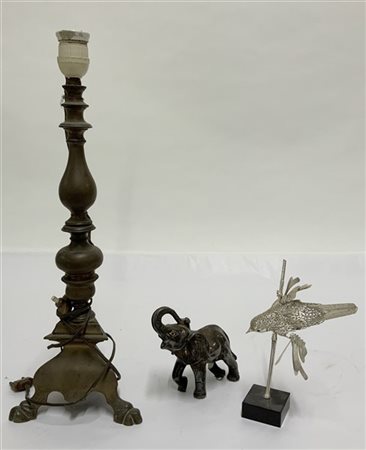 Lotto composto da un candeliere in bronzo e due sculture diverse raffiguranti animali (difetti)