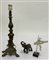 Lotto composto da un candeliere in bronzo e due sculture diverse raffiguranti a