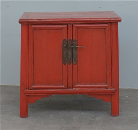 Credenzino in legno laccato rosso con fronte a due ante (cm 77,5x76,5x48,5)