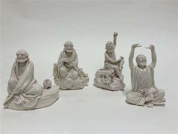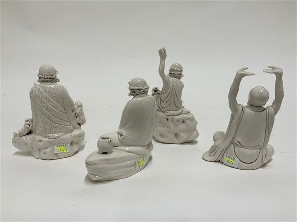 Lotto di quattro figure in porcellana Blanc-de-chine tutte con marchio a doppia zucca raffiguranti saggi