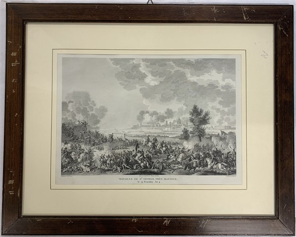 Incisione del secolo XIX raffigurante la battaglia di S. Giorgio nei pressi di Mantova (cm 27x40) In cornice