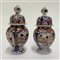 Coppia di piccole potiches con coperchio in porcellana a decoro Imari