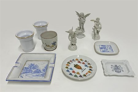 Manifatture diverse. Lotto composto da tre statuette e sette oggetti diversi in