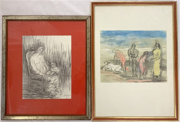 Gruppo di cinque riproduzioni da Henry Moore misure diverse. In cornici (difett