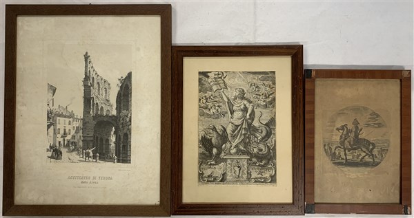 Lotto composto da cinque tra incisioni e stampe di diverse epoche in cornici