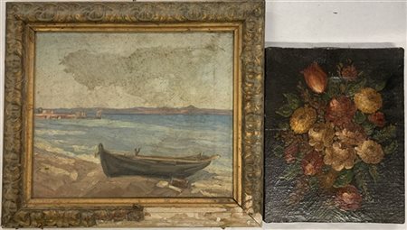 Lotto composto da un dipinto firmato Paul Dahlen raffigurante una marina ed uno di autore diverso raffigurante fiori (difetti)