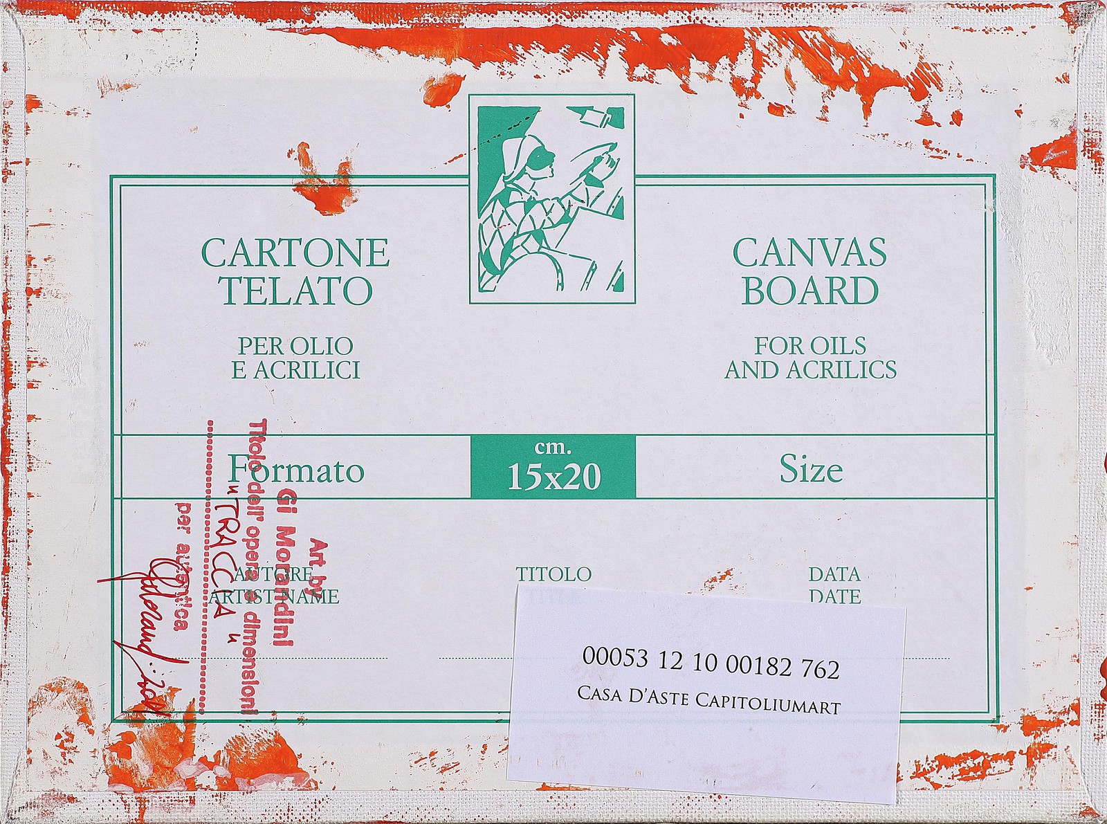 MORANDINI GI (n. 1951) Traccia, 2001. Olio su cartone telato. Cm 20x15. Autentica dell'artista su fotografia. Firma e data in basso al centro. Al retro titolo, tecnica, firma per autentica e data.