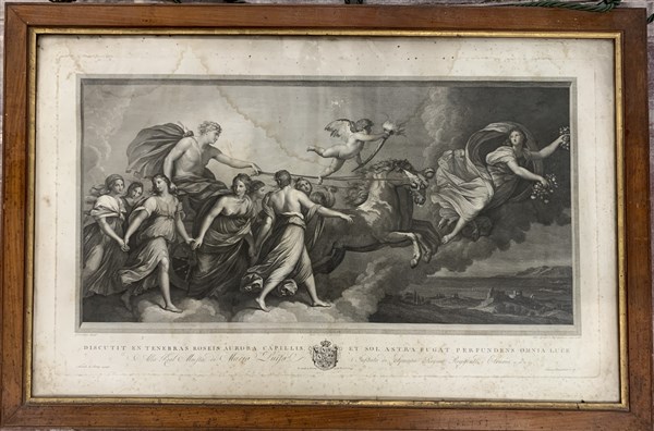 Incisione da Guido Reni raffigurante il carro di Aurora unita ad una inglese de