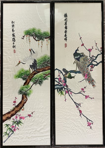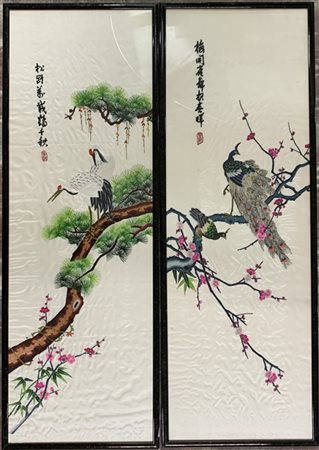Lotto composto da due litografie, due pannelli orientali in seta ed una riprodu