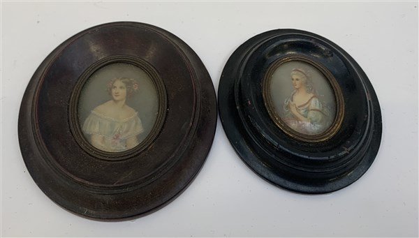 Lotto composto composto da cinque miniature raffiguranti gentildonne e ufficiale, tre recanti firme. In cornici(misure diverse, difetti)