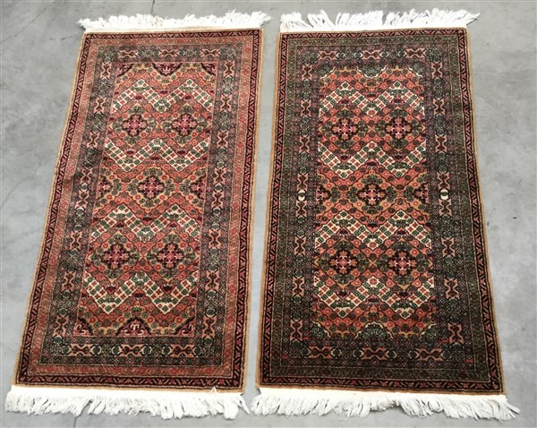 Lotto di due tappeti persiani, secolo XX. Decoro a giardino in policromia. (cm 140x72) (lievi difetti)