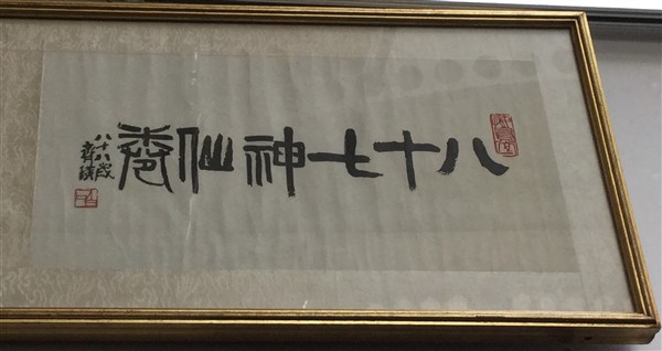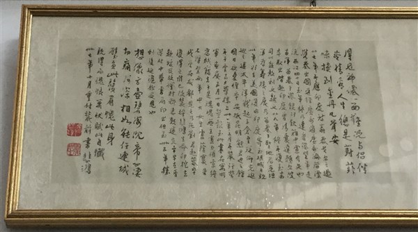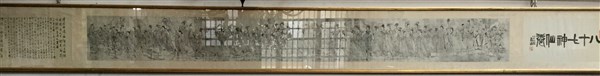 Stampa su carta con soggetto in omaggio a dipinto di epoca Tang raffigurante gli Immortali Taoisti, con commenti e calligrafia nello stile di Qi Baishi e Xu Beihong (lungh. cm 30x314) (lievi difetti) In cornice