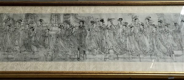 Stampa su carta con soggetto in omaggio a dipinto di epoca Tang raffigurante gl