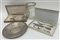 Lotto composto da un vaso in vetro con ghiera e piatto in argento e due set di