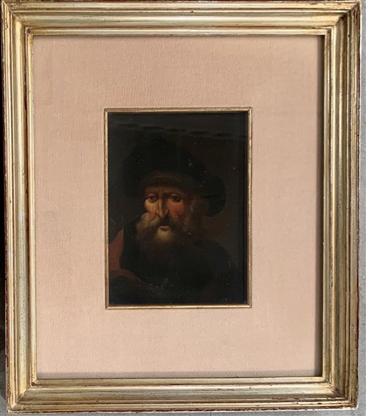 Ignoto "Ritratto di vecchio con cappello" olio su carta applicata (cm 18x13) in