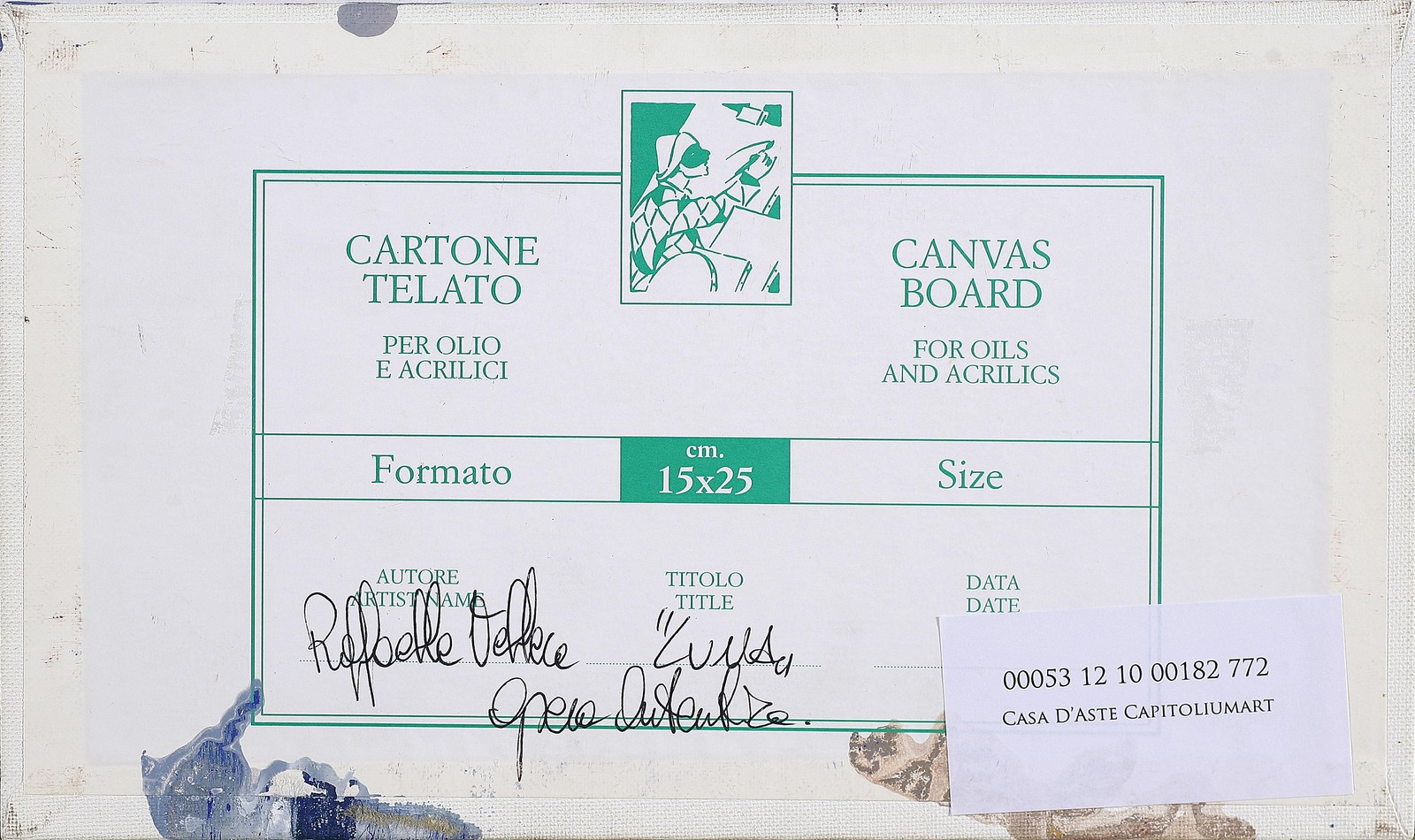 VELLERA RAFFAELLA (n. 1975) Luna. Olio su cartone telato. Cm 25x15. Autentica dell'artista su fotografia. Firma in basso a destra. Al retro titolo, tecnica e firma per autentica.