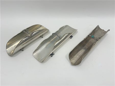 Lotto di tre portagrissini in argento di fatture differenti (g 670) (l max 27) (lievi difetti)