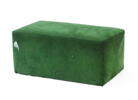 Pouff imbottito e rivestito in velluto verde. Italia, produzione recente. (cm 86x39x50) (difetti)