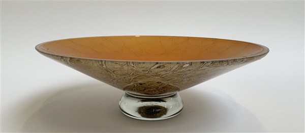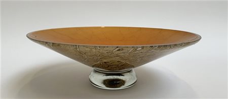 Alzatina in vetro marmorizzato. Italia, produzione recente. (h cm 11,5; d cm 34,5) (DI )