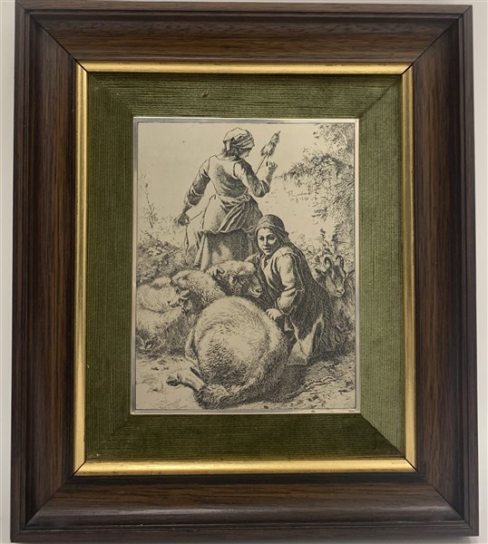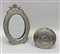 Lotto composto da una cornice ovale portafoto in argento, un orologio da tavolo e un'incisione con scena pastorale su lamina d'argento (difetti)
